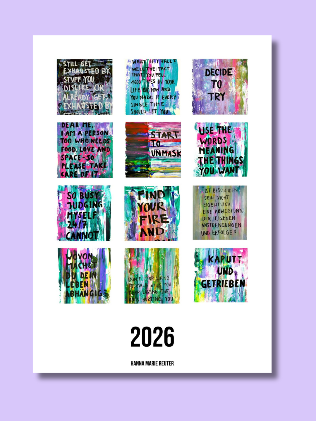 Shop Kategorien: all beauties lovely stickers sweet cards cool prints cute bags bold calenders Shop all beauties | lovely stickers | sweet cards | cool prints | cute bags | bold calenders | Tränen Sticker "not your crybaby" ab 1,50 € Tränen Sticker "still crying" ab 1,50 € Tränen Sticker "Cry for good" ab 1,50 € Tränen Sticker "Let shit go" ab 1,50 € Kalender 2026 29,00 € Geburtstagskalender mit 12 Kunstwerken 29,00 € Kunstdruck "Hab Mut du selbst zu sein" ab 30,00 € Postkarte "Listen to your emotions" ab 2,50 € Postkarte "Sich öfter mal enttäuschen" ab 2,50 € Postkarten Set 6,50 € Sticker "Hör dir zu" ab 1,50 € Postkarte "Hör dir zu" ab 2,50 € Stofftasche - Einzelstück 17,50 € Ausverkauft Postkarte "Doing it for the feeling" 2,50 € Stofftasche - Einzelstück 17,50 € Ausverkauft Kunstdruck "Hör dir zu" ab 30,00 € Stofftasche - Einzelstück 17,50 € Kunstdruck "Sich öfter mal ent täuschen" ab 30,00 € Stofftasche - Einzelstück 17,50 € Postkarte "Fehler wie Briefmarken sammeln" ab 2,50 € Stofftasche - HÖR DIR ZU Linoldruck 17,50 € Stofftasche - Einzelstück 17,50 € Stofftasche - NIMM DICH MA WAHR Linoldruck 17,50 €